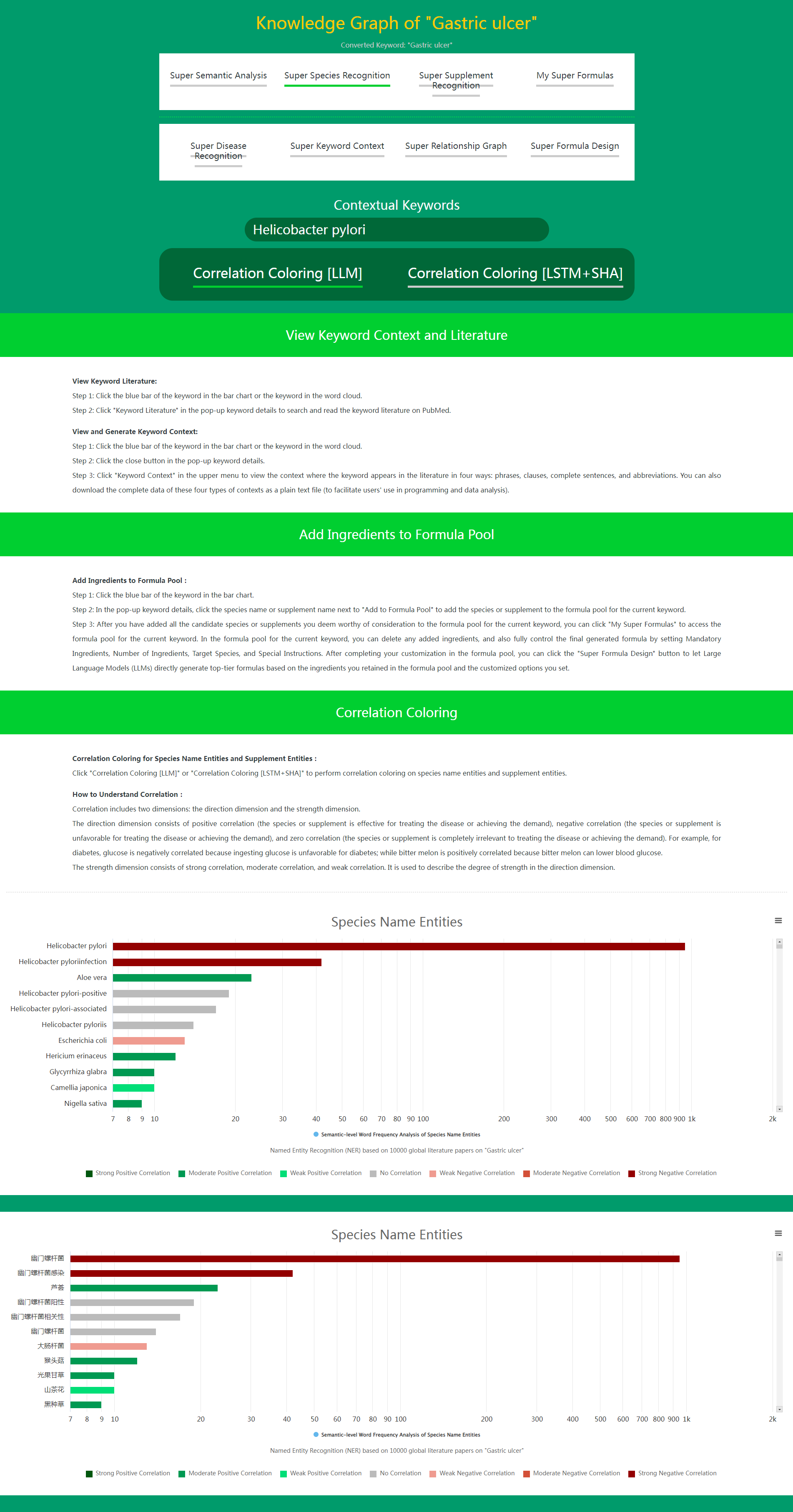 Four types of large language models are currently supported. We will compare the final formulas generated by Doubao and DeepSeek-R1 respectively. Firstly, the large language model will conduct a secondary check to ensure all species and supplements selected in the Formula Pool are positively correlated with the target demand. Then it will elaborate the design ideas and logical rationale of the formula, explaining how multiple mechanisms work to treat the disease or achieve the health goal. After that, it will present the detailed formula based on the established rationale: selecting one to two ingredients for each mechanism, explaining their functions in the formula, as well as the daily dosage and administration method. All generated formulas fully comply with your customization settings in the Formula Pool. The final part is a summary of the entire formula design, including key notes and precautions.